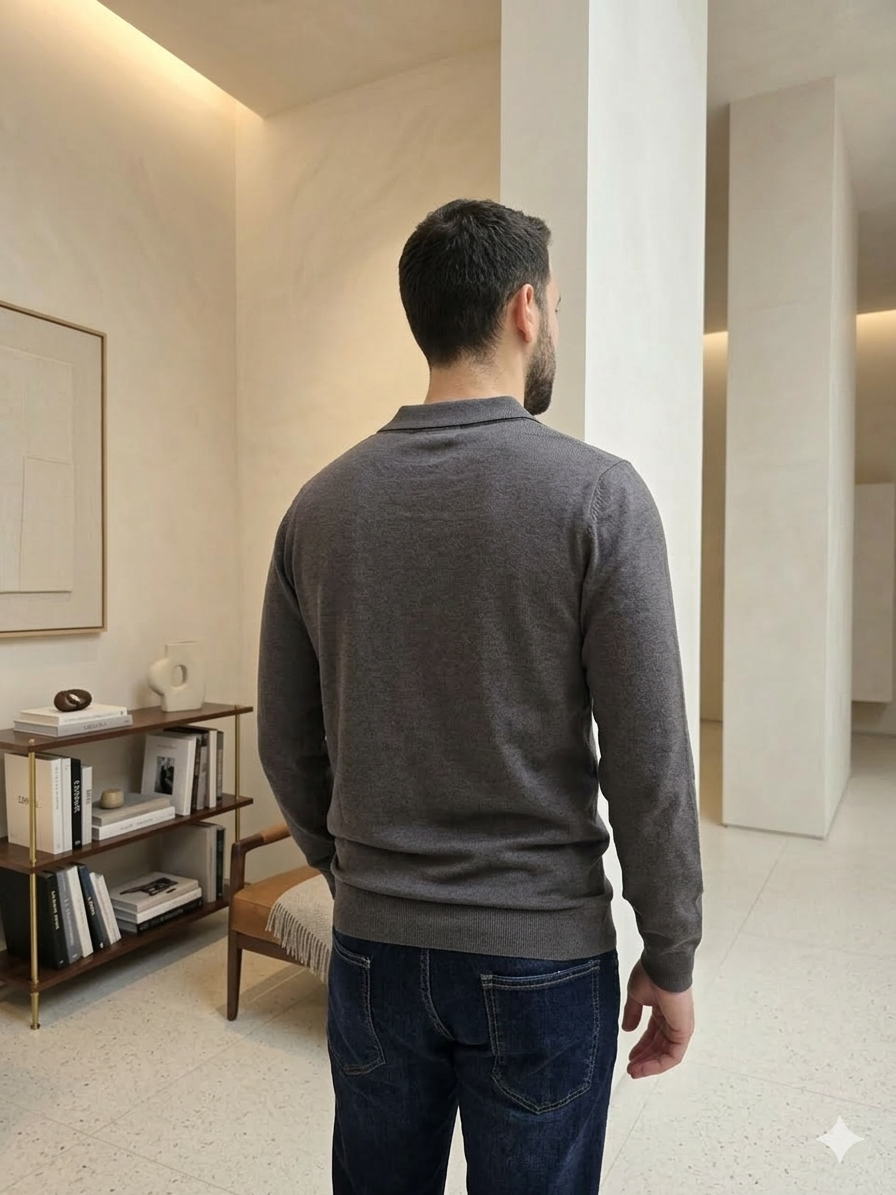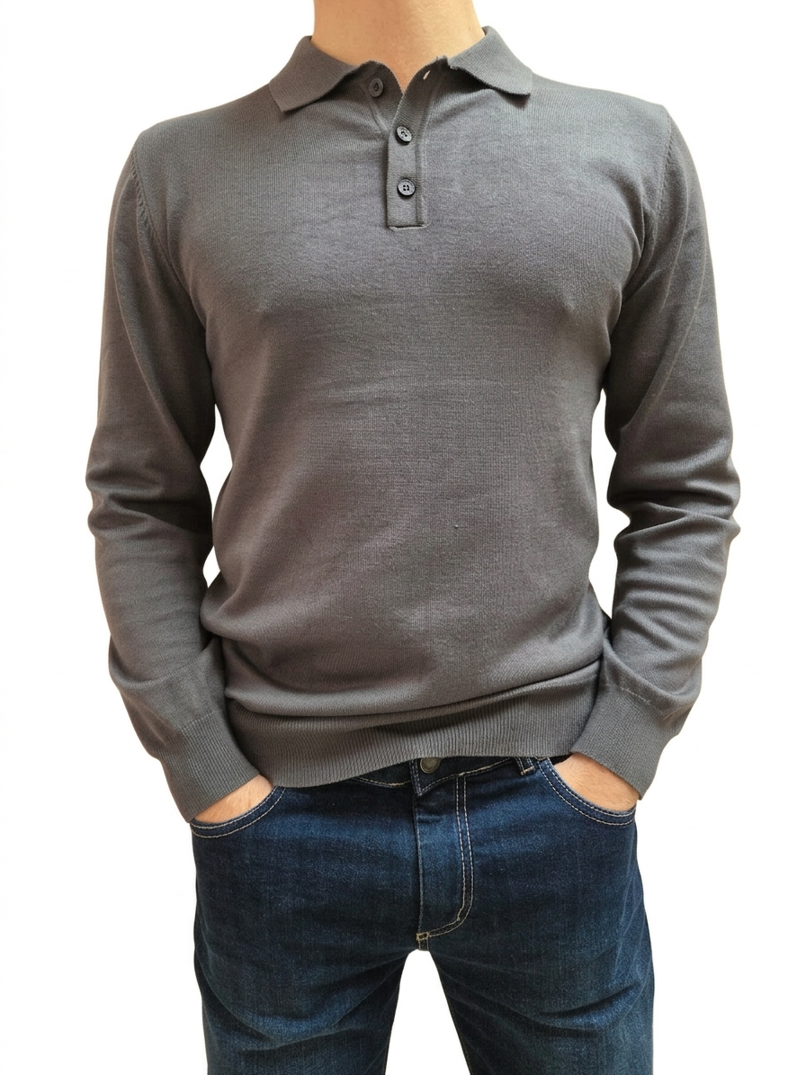 Polo manica lunga stretch di colore grigio.
