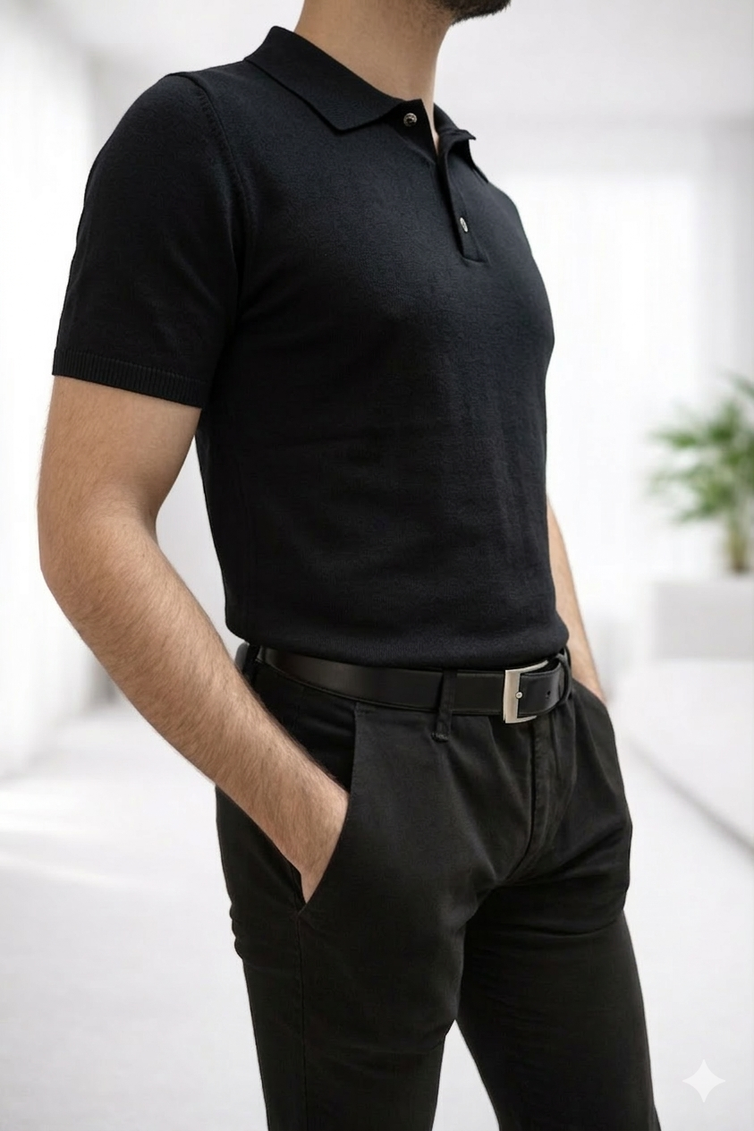 Polo mezza manica stretch di colore nero.